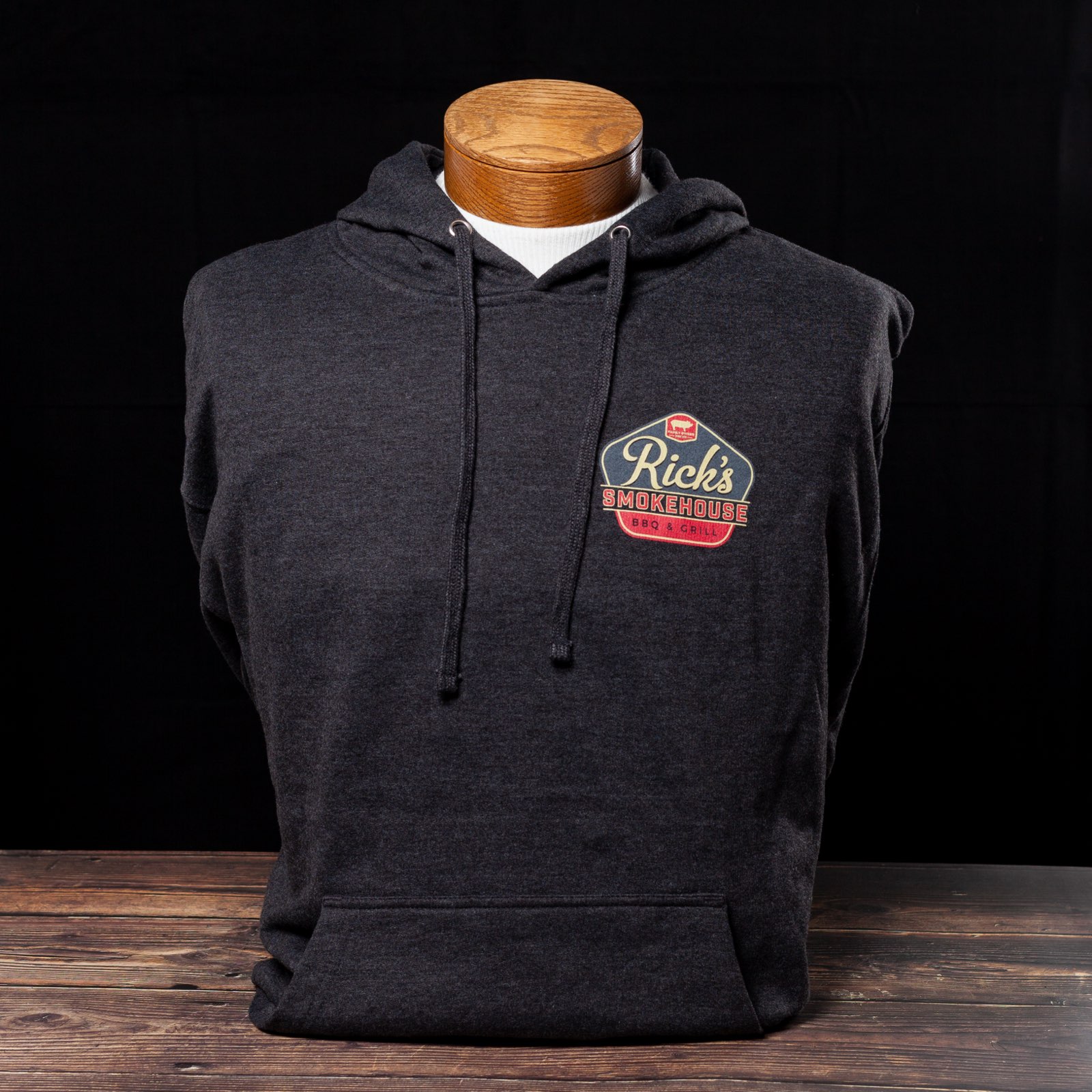 - Dark heather grey fabric with full color small logo on front